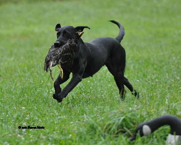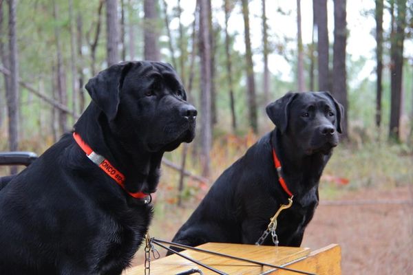 Bronco and his son Macho on the wagon being intent. It is awesome when SHOW Labradors can also do what they were bred to do - RETRIEVE !