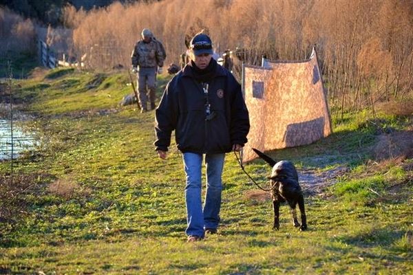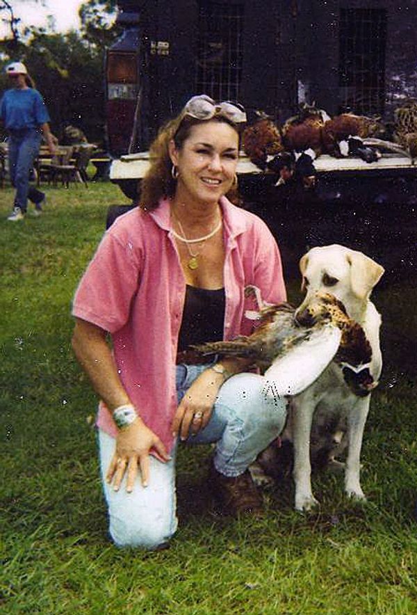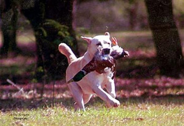 Remedy's Longpine Macho Ren Marine, "Macho" with his Mistress Ellie Ford at Longpine Plantation retrieving Quail for dinner