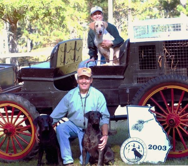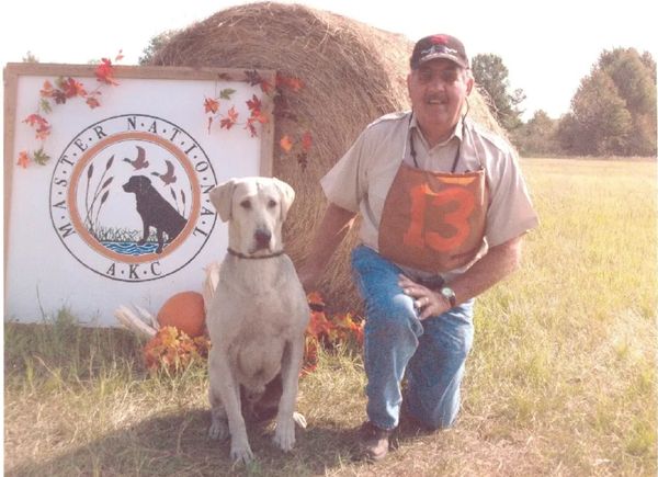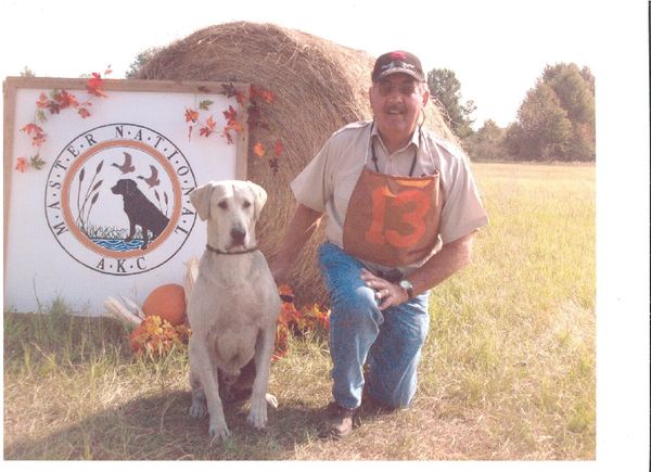 Remedy's Reno Gambler MH "Gambler" on his left.  Gambler ran the Master  National in 1999 in SC and 2003 in Thomasville, GA.  On his right is  Coalwater's Wild Willie MH, "Willie".  This was Willie's first and only time to be able to run the Master National. He was one of 57 out of 174 dogs that ran in Master B that qualified!